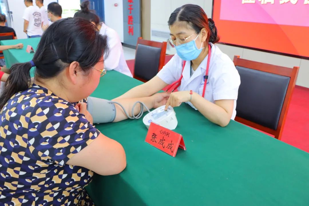 为关爱教职工身心健康,增强教职工健康意识,积极响应“体重管理年”活动,为教职工提供便捷、专业的健康服务,做到有病早发现、早预防,6月5日,太阳集团工会联合沧州中西医结合医院举办健康检测与义诊活动。沧州市中西医结合医院张成成、张红艳、金倩倩、狄金涛四位心内科、妇科、糖尿病和中医科专家携带专业设备,结合太阳集团教师健康体检报告,为太阳集团教职工提供现场诊断、咨询和健康指导。校领导云电军、张占平、周振平到义诊现场对医生们的工作表示感谢并接受了部分检查。