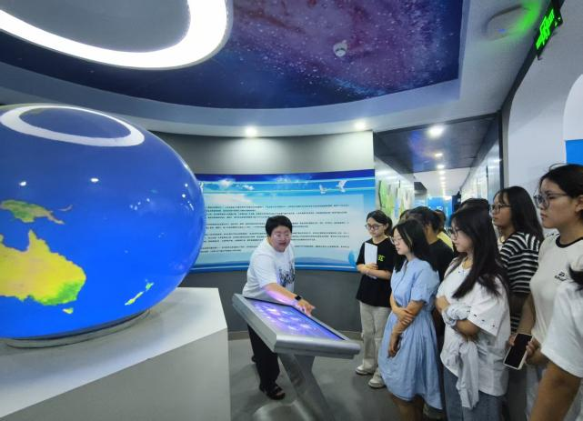在气象科普馆,工作人员在阐述气旋、卫星云图、气象灾害防御的同时,让同学们亲身体验了三维光影地球仪演示装置和紧急预先体验装置等高科技设备。学生还近距离观察了气象台工作场景,深入学习了天气系统的基本概念、探空气球系统、卫星对海洋气象观测的重要性以及雷达图的意义。