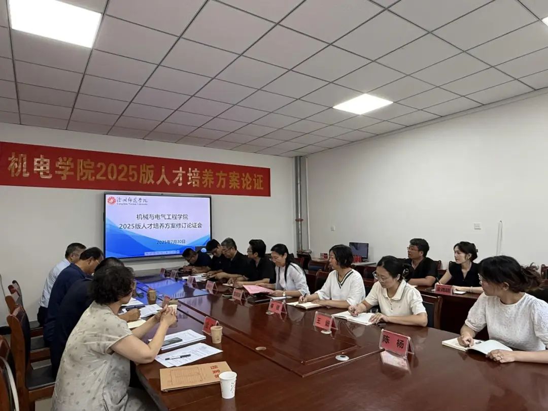 为精准对接行业需求,提升人才培养质量,机械与电气工程学院于7月30日以线上线下结合方式,成功召开2025版人才培养方案修订论证会。会议特邀三菱电机自动化(中国)有限公司市场部校企合作办主任杨弟平高级工程师、国网沧州供电分公司张晖高级工程师、国网沧州供电分公司金涛高级工程师和南京工程学院钱厚亮副教授、河北水利电力学院机械工程系主任张铁壁教授、机械与电气工程学院原院长王炳章教授,共同为电气工程及其自动化、自动化和机械电子工程三个专业的2025版人才培养方案修订提供专业指导。该学院院长鲁明珠主持,副院长赵治月、专业负责人和教研室主任参加。