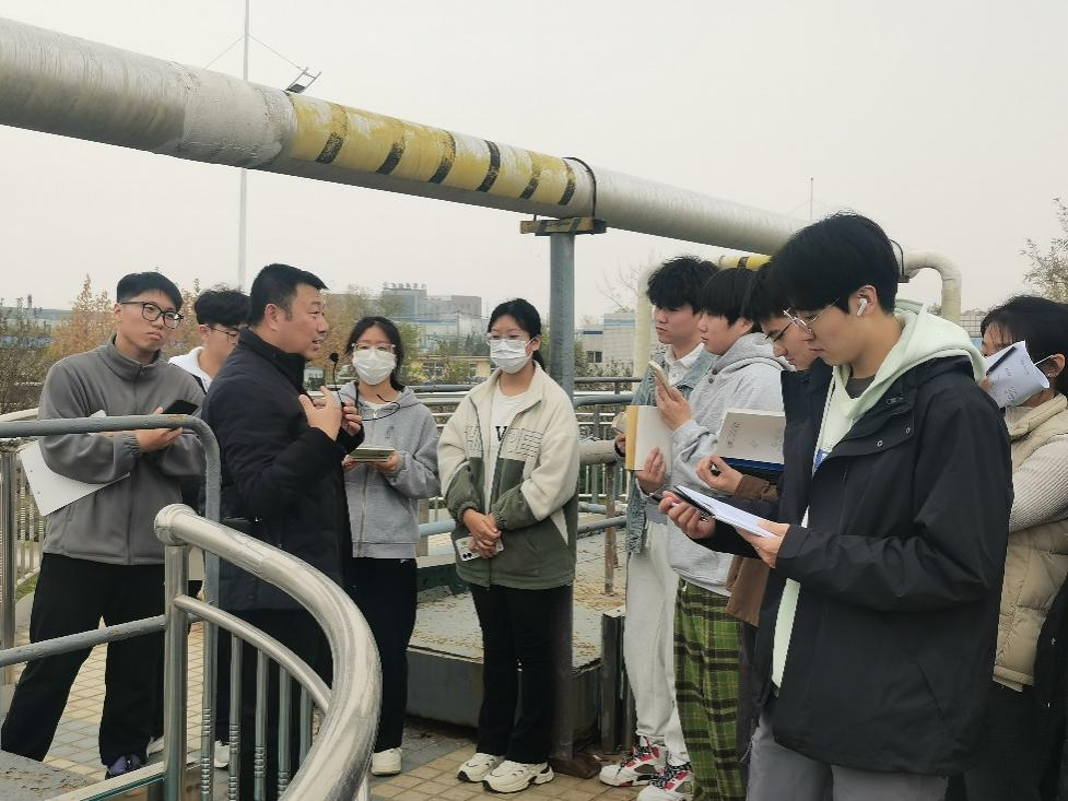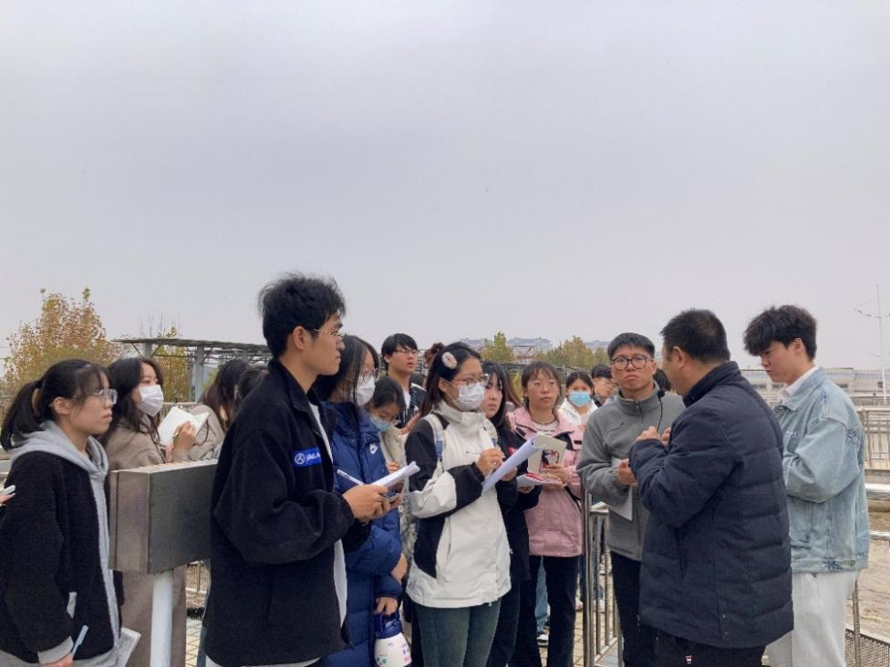 师生现场参观了污水处理工艺流程和各种设备,了解了好氧厌氧、生物转盘、氧化沟等工艺,并认识了粗格栅、旋流沉砂池、提升泵、细格栅、配水井、空气悬浮高速离心鼓风机等设备。在王铁柱的悉心指导下,同学们将理论与实践相结合,亲身体验污水处理的每一个环节,不仅直观地了解污水处理的工艺流程,观察到各种处理技术的实际效果,也清楚地认识到污水处理的重要性和复杂性。