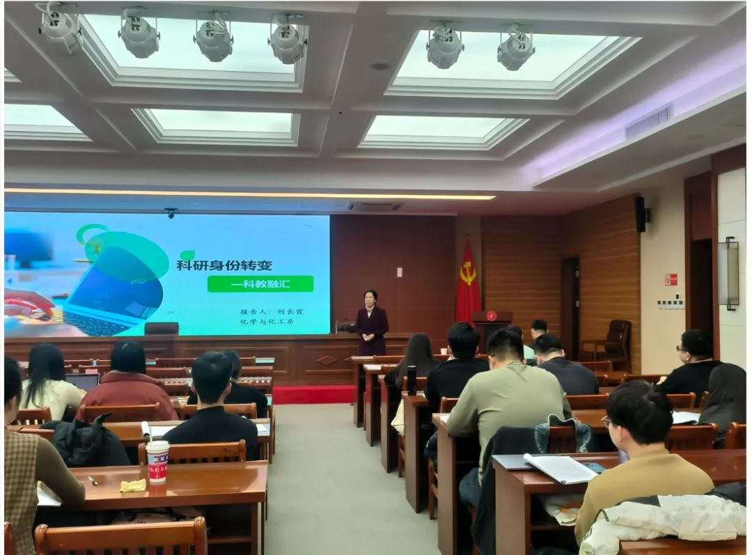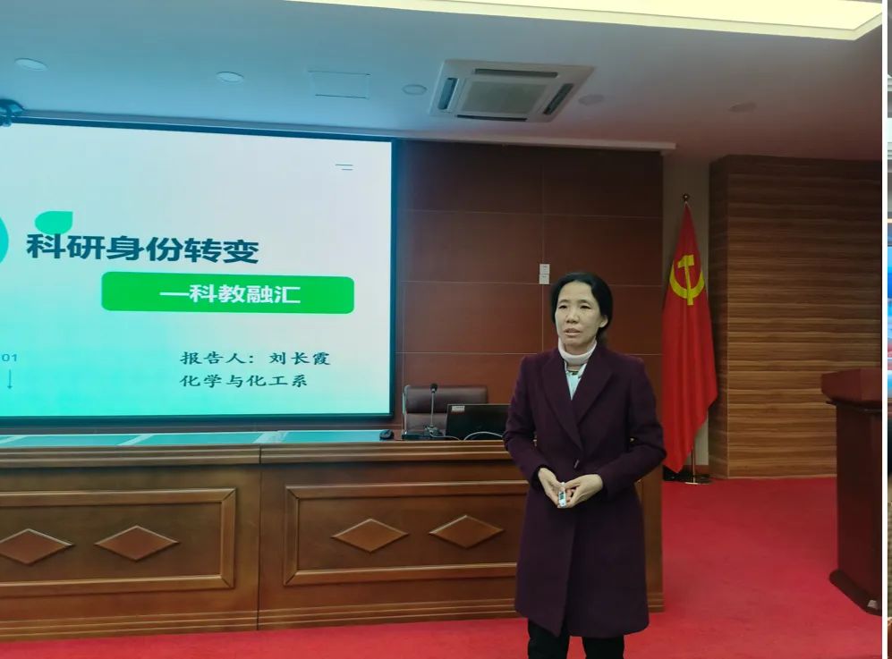河北省教学名师、化学与化工学院刘长霞教授以“科研身份转变——科教融汇”为题进行专题讲座,讲座中,刘老师从个人经历、科研身份转变及科教融汇等方面进行了分享,并提出三点敬畏:敬畏课堂,潜心教学;敬畏知识,孜孜以求;敬畏视野,教研相长。刘老师强调,科研和教学从不矛盾,我们要用教学拓展科研,用科研反哺教学;我们要刻苦钻研,提高科学素养;我们要进行课程改革,才能常教常新。刘老师以其风趣幽默的语言,渊博的专业知识以及精益求精的学术态度赢得了新教师们的阵阵掌声。