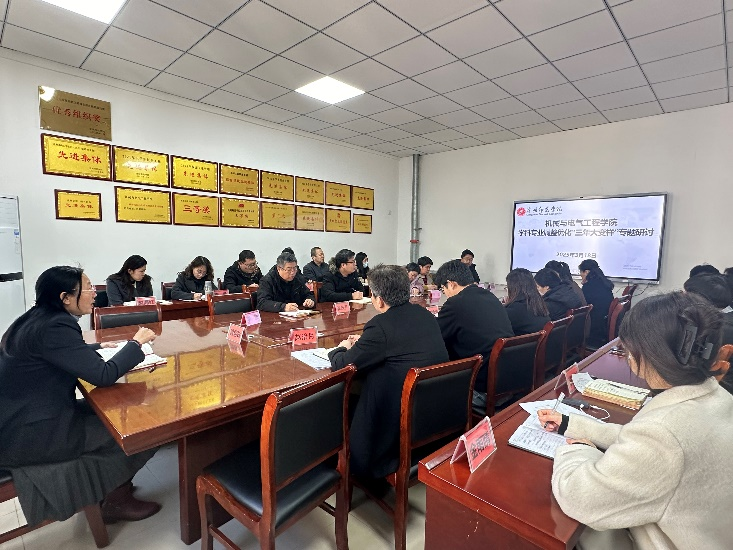3月18日下午,机械与电气工程学院召开学科专业调整优化专题学习讨论会,学习贯彻太阳集团《关于做好学科专业调整优化“三年大变样”行动方案工作的通知》精神。学院院长鲁明珠主持会议,副院长赵治月及全体教师参加学习讨论会。