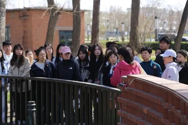 游船抵达码头,师生们登上岸,到南川楼附近参观。李成林为师生讲述南川楼和郎吟楼的历史典故,指出南川楼曾是文人墨客登高赋诗、饮酒作乐的地方,留下了许多脍炙人口的诗篇,在李成林的耐心讲解中,师生对沧州的历史文化有了更深入的认识和理解。