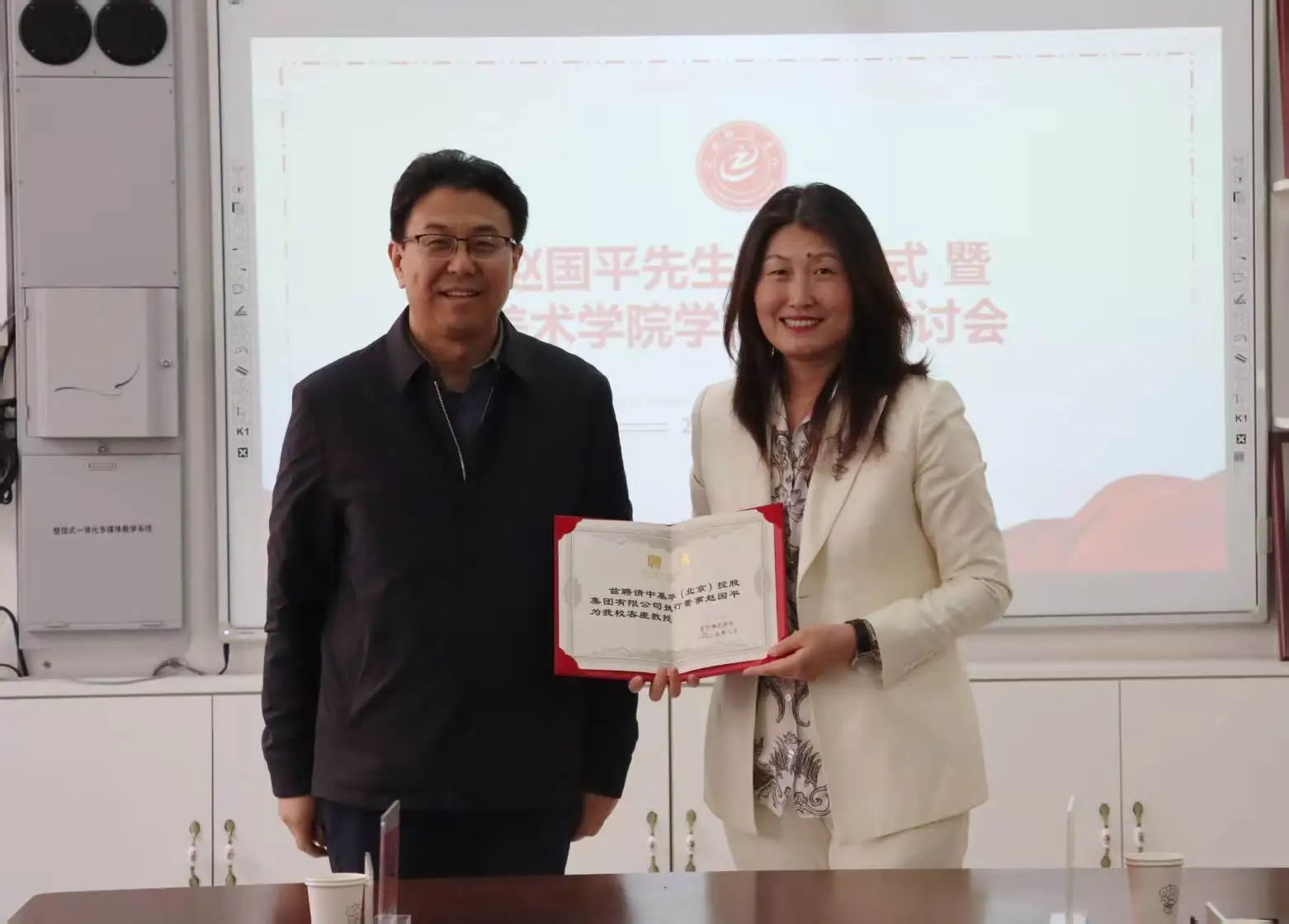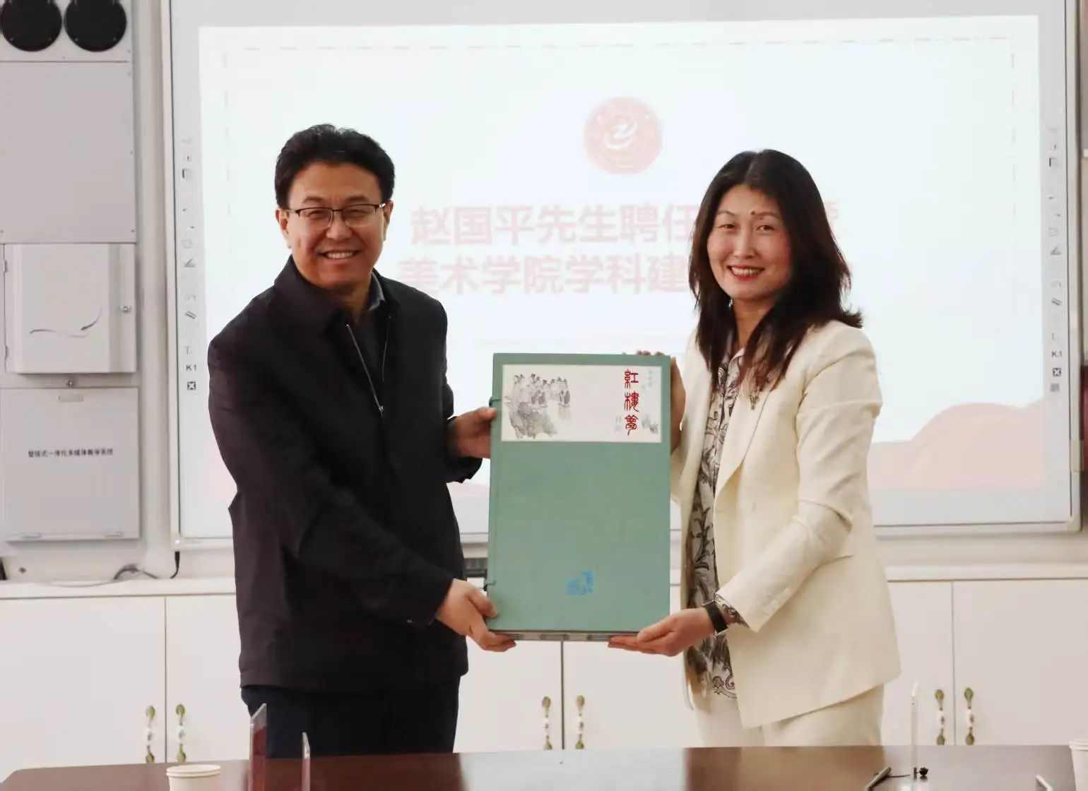 3月27日上午,赵国平先生聘任仪式暨美术学院学科建设研讨会在太阳集团美术学院会议室举行。中基华控股集团有限公司执行董事赵国平,千页艺术创始人、龙鳞装非物质文化遗产传承人张晓栋,英国Noblypos金融科技公司、联合创始人乎思愣,中基华工程管理学院主任孙兆霞来到太阳集团,同太阳集团党委书记云电军、党委副书记邢树军、副校长高颖以及美术学院的师生代表走进了一场“历史与未来交织”的文化之旅,触摸艺术跳动的脉搏