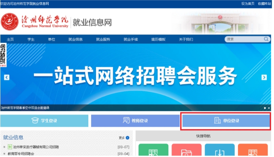 1.单位注册与登录。用人单位登录网址:http://caztc.jysd.com,点击单位登录。
