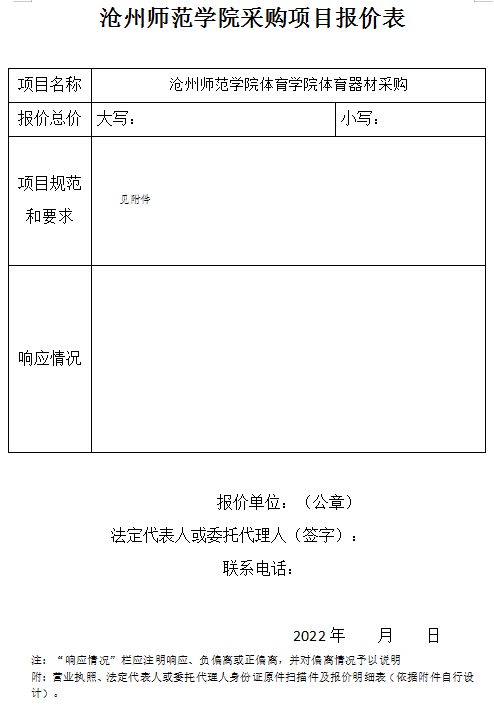 报名方式:响应人将报价信息填入“太阳集团tcy8722网站采购项目报价表”签字盖章后,连同报价单位营业执照、法定代表人或委托人身份证原件扫描件、盖公章的报价明细表(依据附件自行设计,有偏离的提供实际响应的报价表,并将偏离项用黑体标注)一同发至czsygzc@163.com