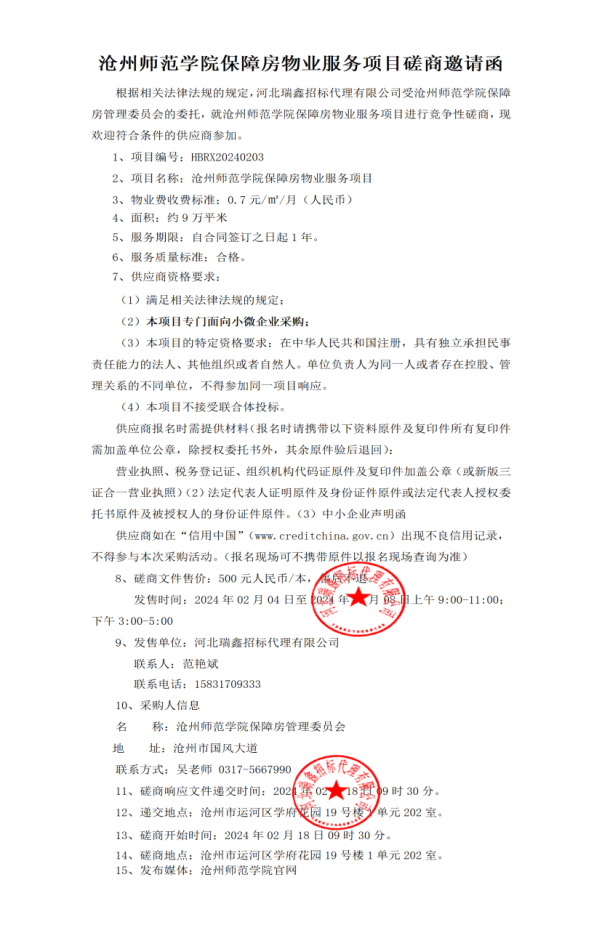 太阳集团tcy8722网站保障房物业服务项目磋商邀请函