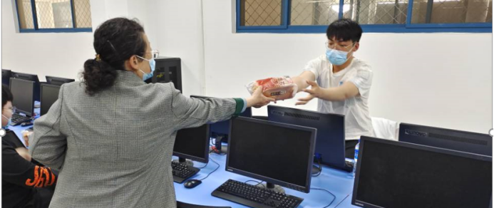 考虑到比赛时间过长,赛事筹备组还为参加比赛的同学们准备了食物和饮用水。比赛期间,学生严格遵守竞赛流程和纪律,赛场气氛紧张而激烈。