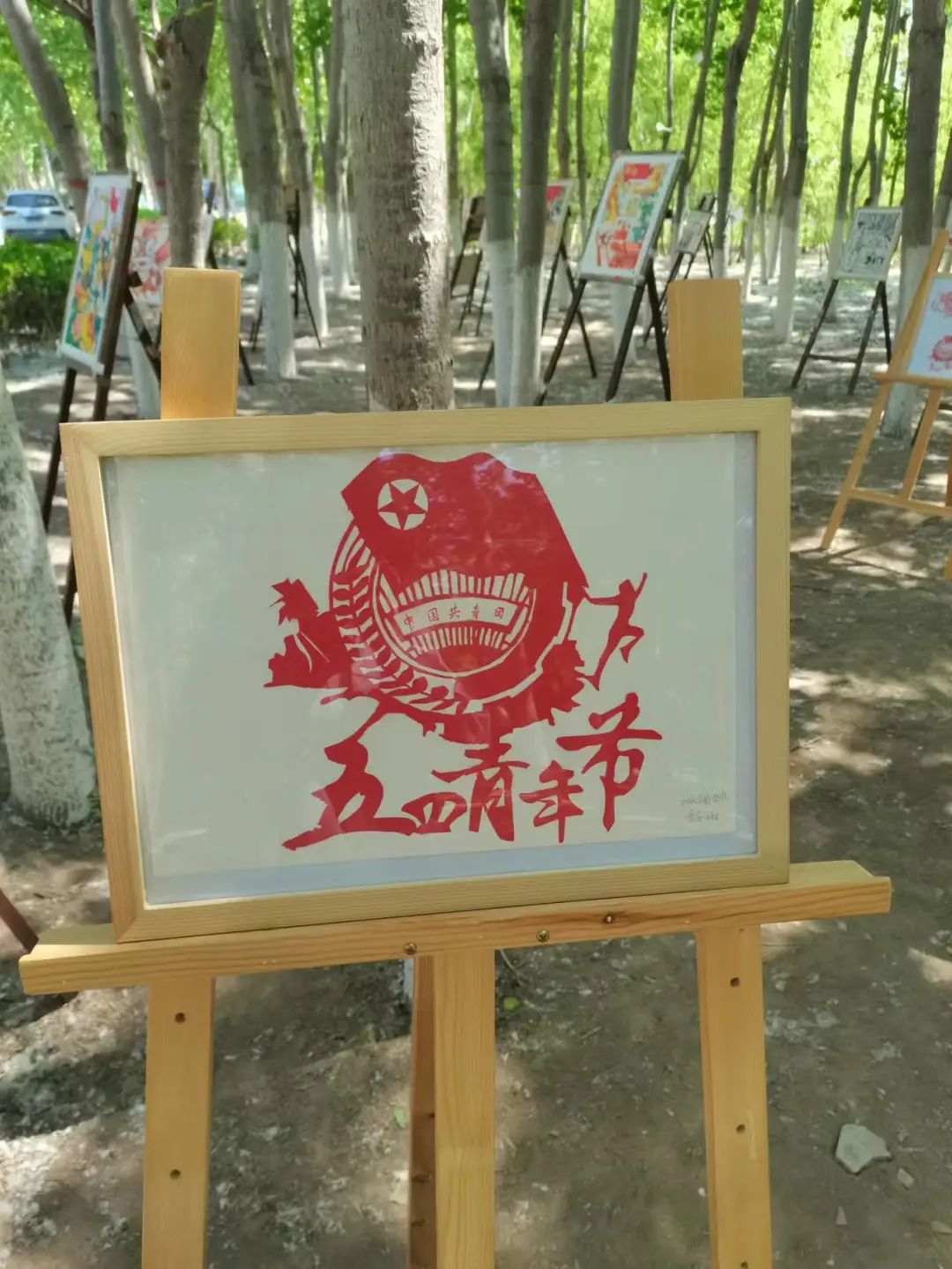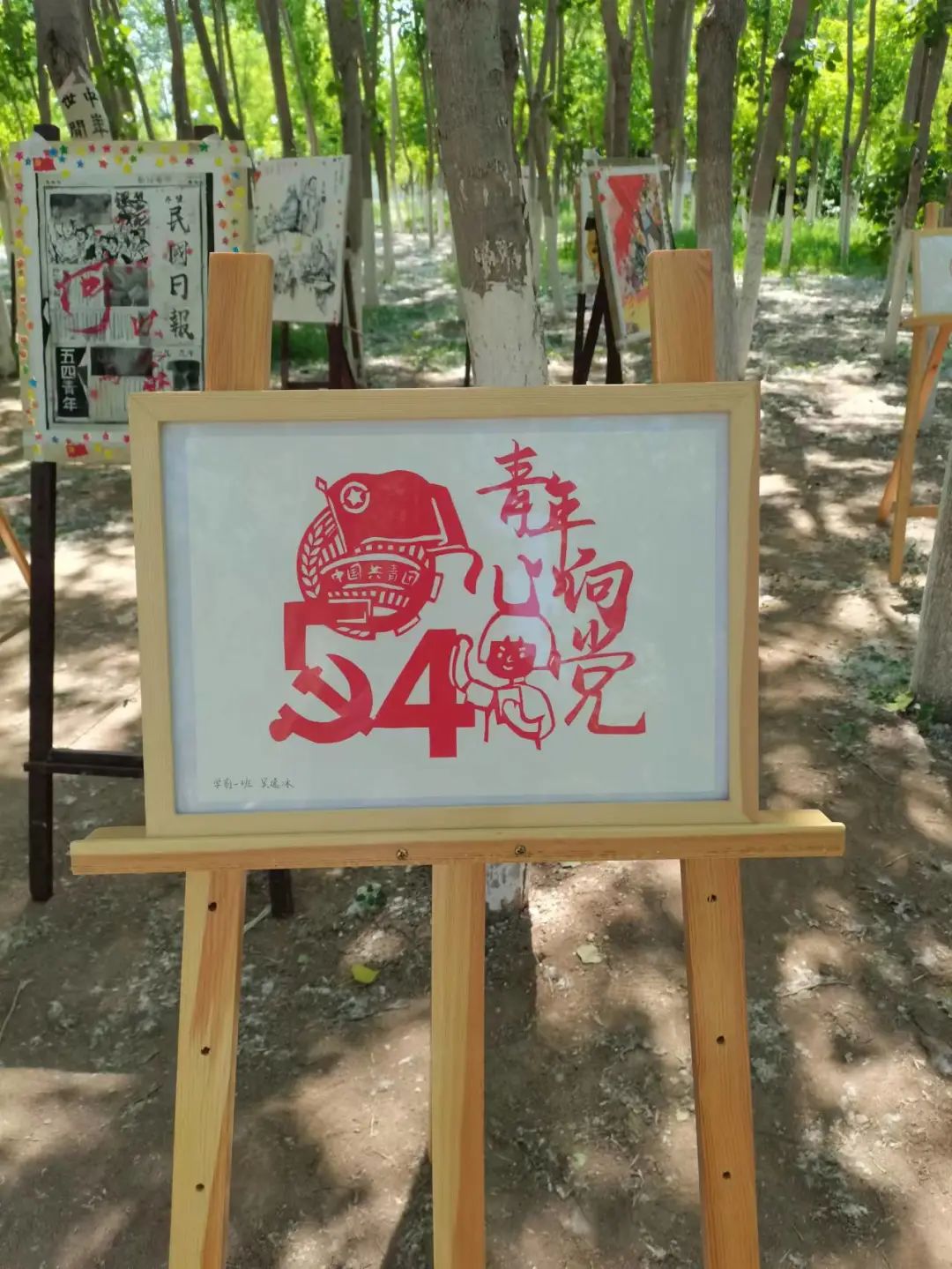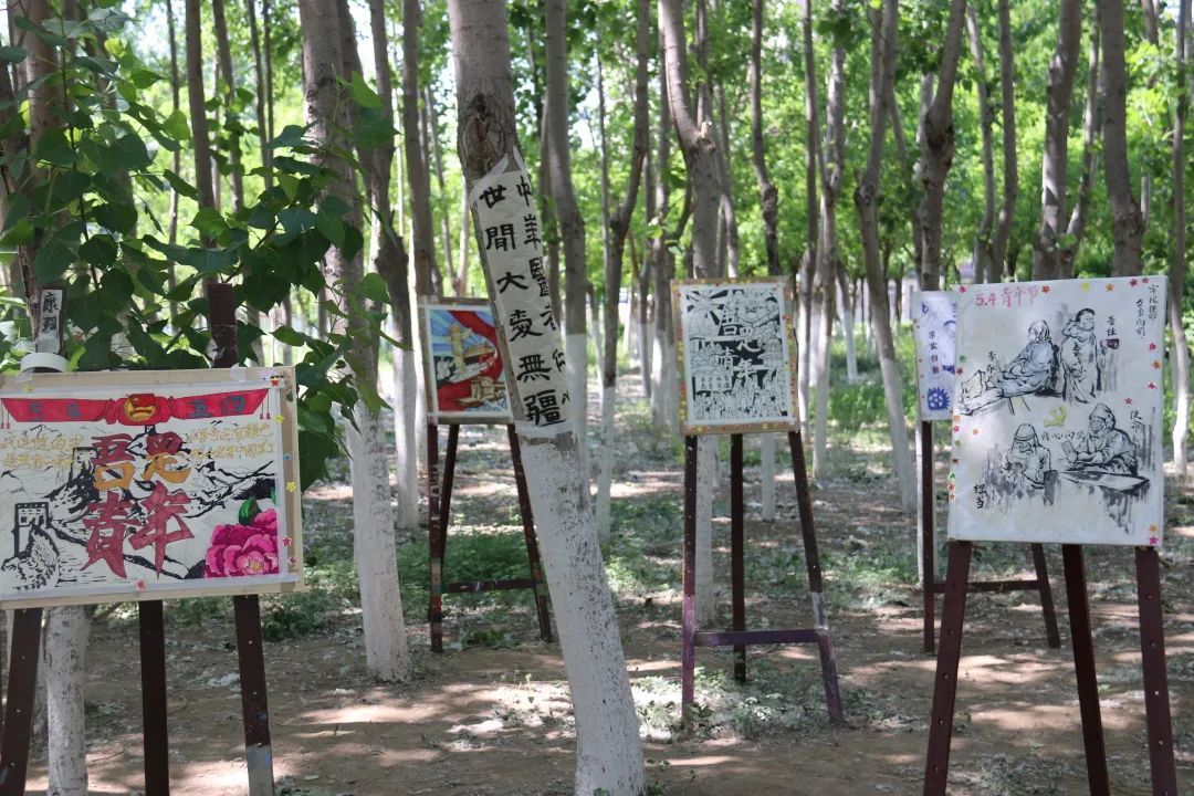 今年是中国共产主义青年团建团一百周年,在五四青年节即将来临之际,由校团委主办,美术学院、文学院、教育学院承办的绘画、书法、剪纸作品展在校园西南侧杨树林和小操场开展。让我们一起走进“青年林”,共同感受同学们的热情。