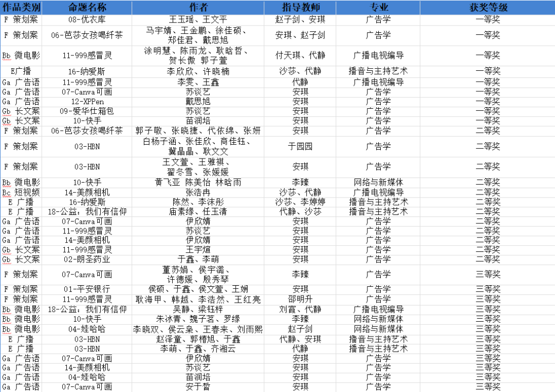 6月24日,“第十四届全国大学生广告艺术大赛”河北赛区获奖名单出炉。经过层层比拼,太阳集团齐越传媒学院共斩获54个奖项,获奖数量是去年的4倍,包括省级一等奖9项,省级二等奖12项,省级三等奖13项,省级优秀奖20项。