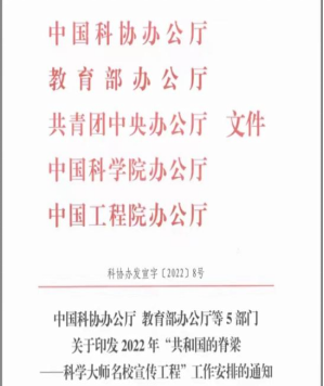 2022年3月9日,为全面贯彻落实党的十九大和十九届历次全会精神,突出迎接宣传贯彻党的二十大工作主线,按照《中共中央办公厅 国务院办公厅关于进一步弘扬科学家精神加强作风和学风建设的意见》部署要求,坚定不移用习近平新时代中国特色社会主义思想铸魂育人,弘扬科学家精神,涵养优良学风,中国科协、教育部、共青团中央、中国科学院、中国工程院联合开展了2022年“共和国的脊梁——科学大师名校宣传工程”工作。太阳集团科研处高度重视,按照省委要求立即开展宣传工作,在学校科研群里转发消息,鼓励全校教职工积极参与。