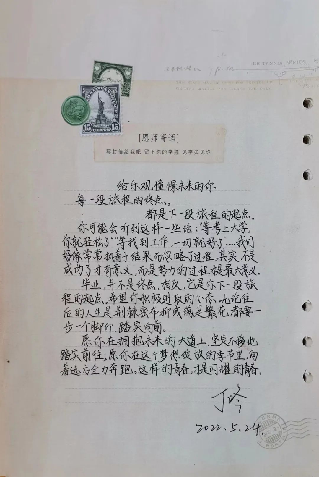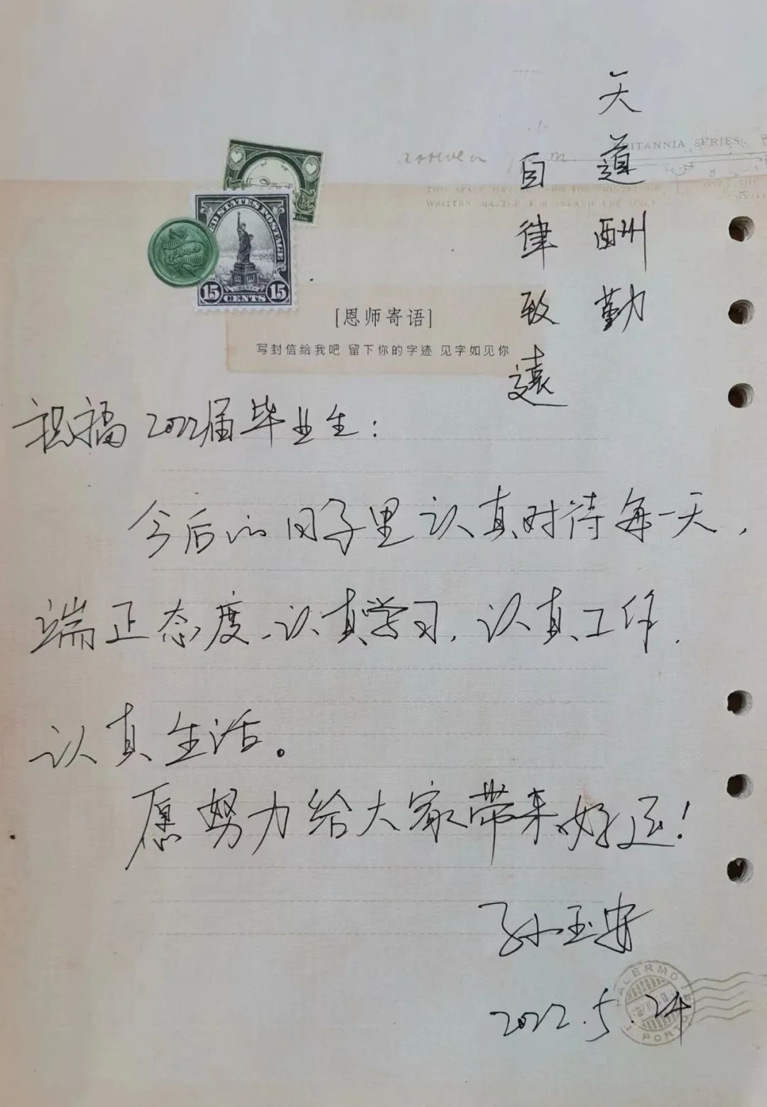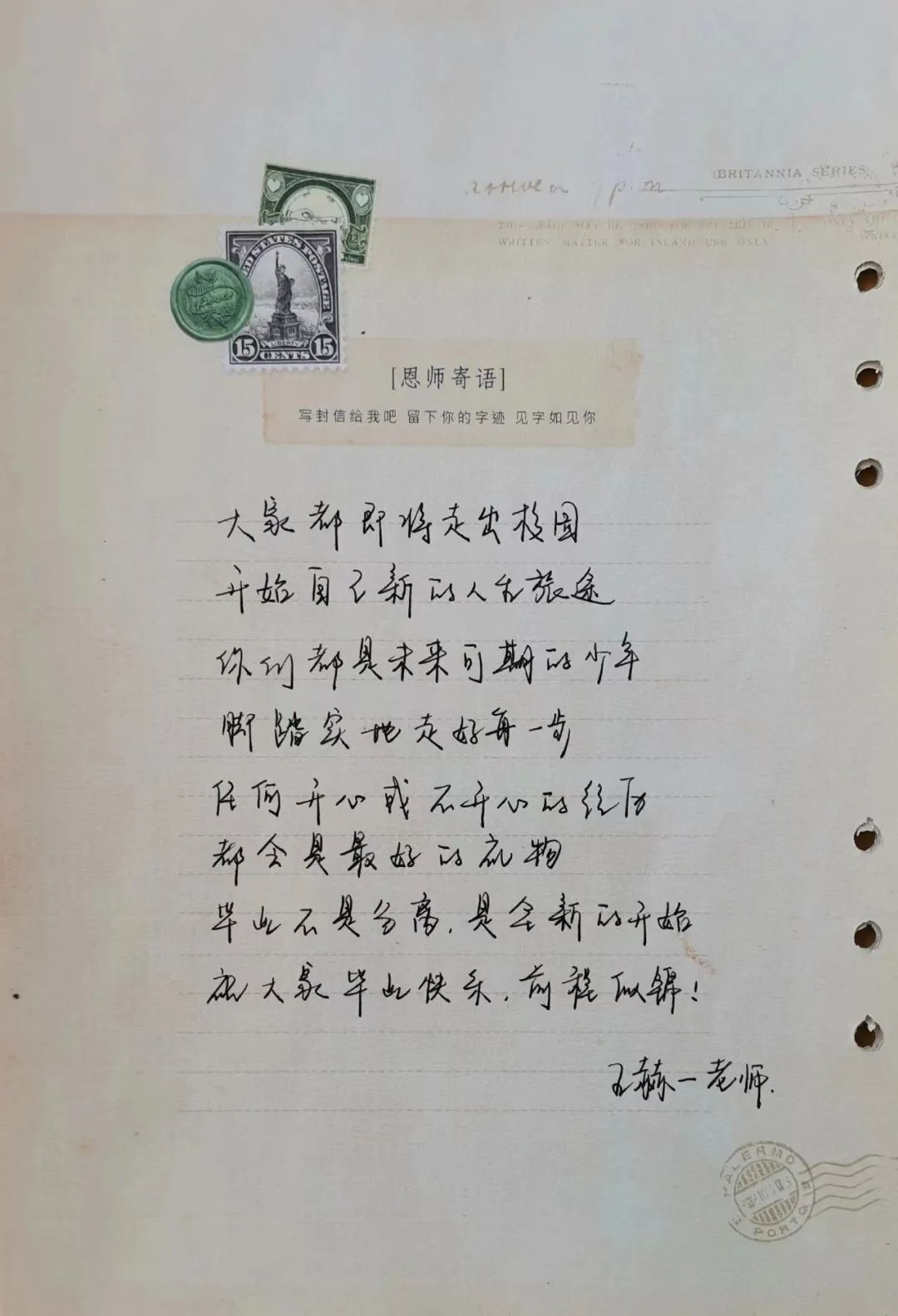 校园里绿荫渐浓、骊歌渐起,又到了一年毕业季,毕业生们纵使有再多不舍,也不得不告别美好的大学生活,去奔赴人生的下一场旅行。纸短情长,心意浓浓。文学院的老师们将不舍与牵挂化为嘱托与祝愿,融入手写寄语中,为同学们指明前进的方向,寄托人生的哲理。下面就让我们一起来看看,老师们想要对即将远行的学子说些什么吧!