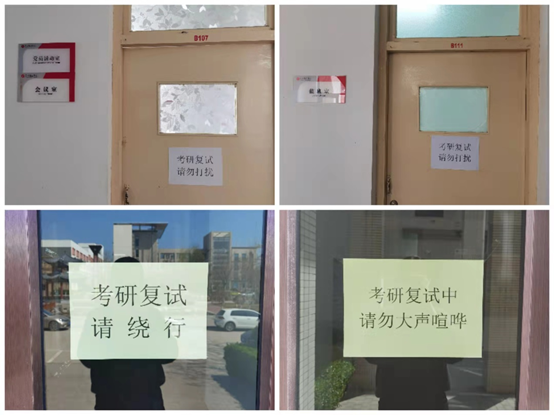 各学院针对复试学生对独立空间和流畅网络的需求,积极联系学校现代教育中心提供网络支持,确保研究生“云复试”的顺利进行,还配备了干净整洁、光线充足、环境安静的会议室以及办公室作为考研复试面试场地。“复试屋”里无线网络、手机支架、耳机等辅助用品一应俱全,醒目的提示语、干净的桌椅、暖心的水果……细节满满。每天还会有老师和志愿者同学们负责复试场所的卫生清洁、环境消杀工作,为学生复试提供良好的物质保障和环境保障。