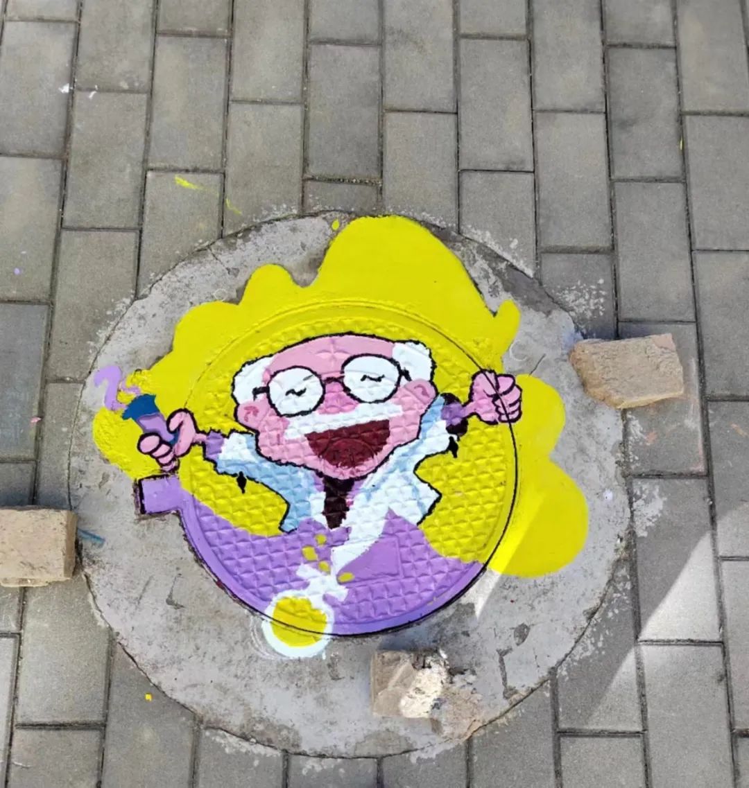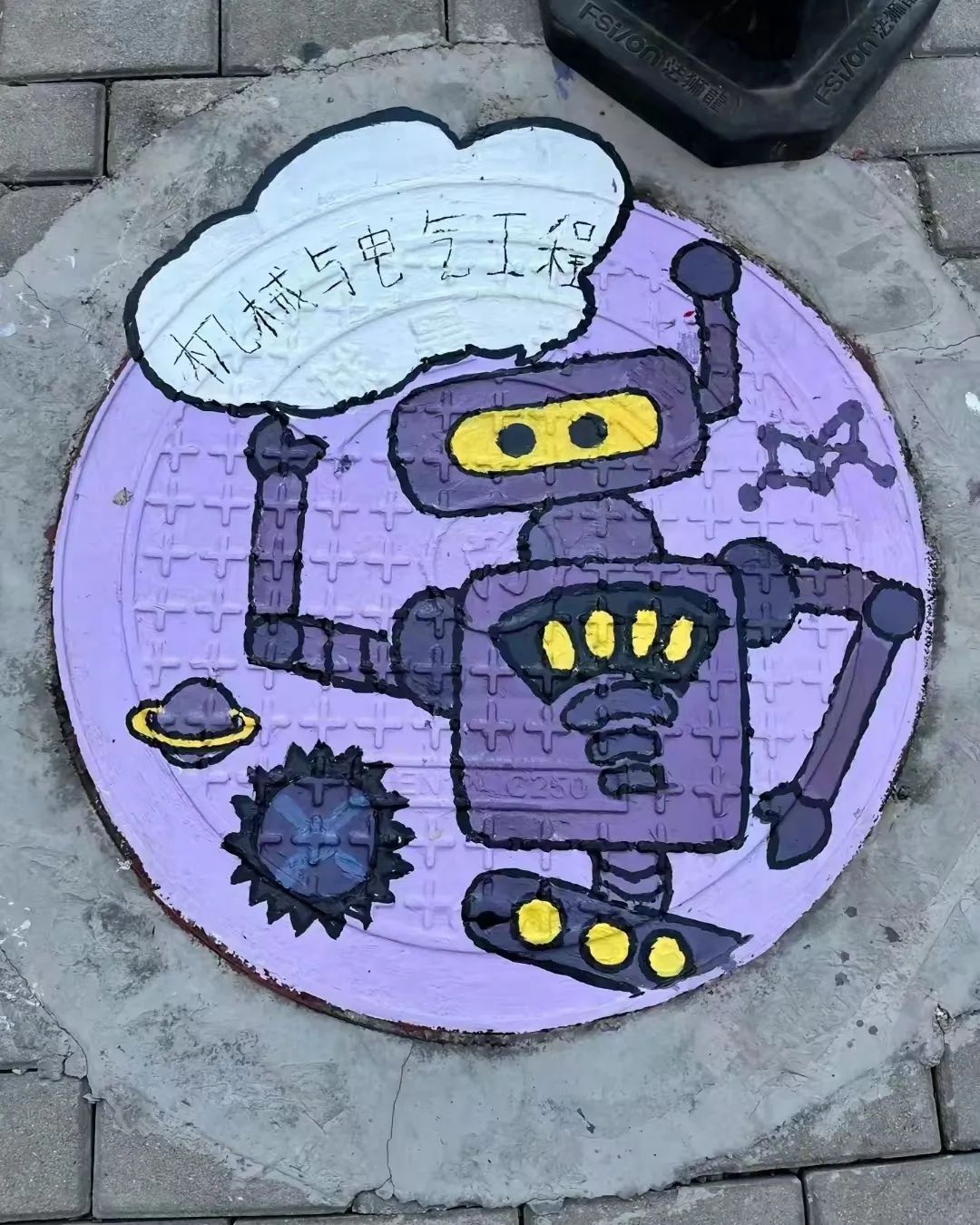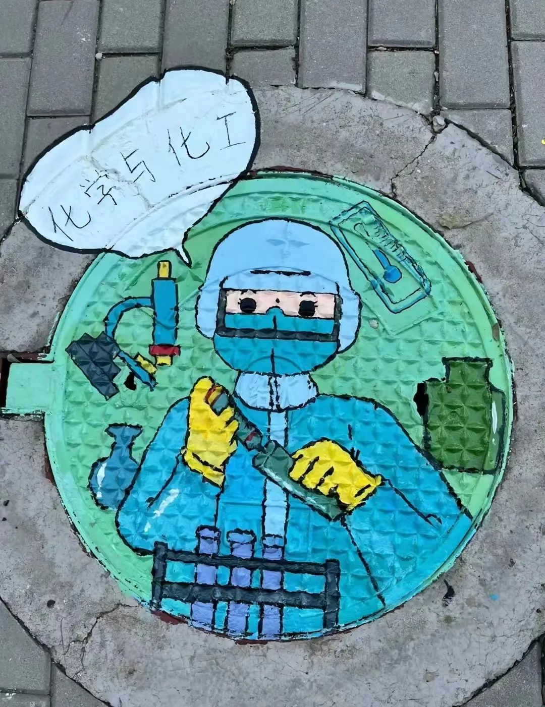 原来是校园里的井盖都披上了靓丽的“新衣”