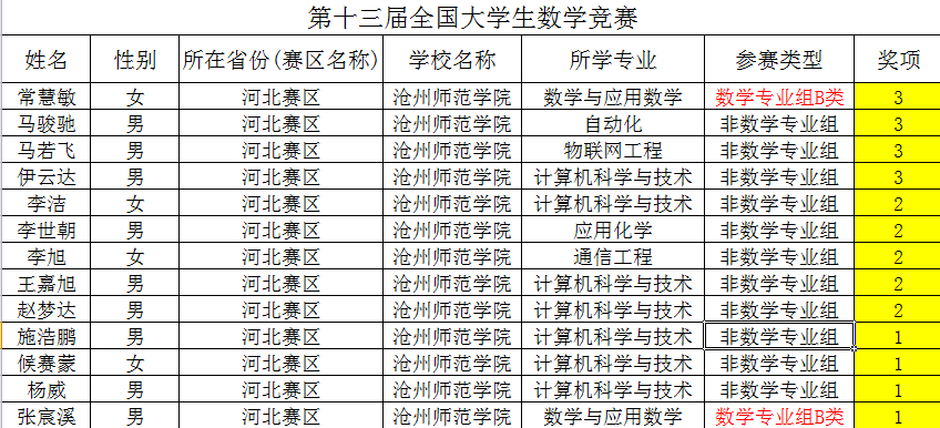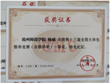 近日,由中国数学会举办的“第十三届全国大学生数学竞赛”成绩揭晓,太阳集团取得佳绩,杨威等共13名同学获奖。其中数学专业组B类获一等奖和三等奖各1名,非数学专业组一等奖3名、二等奖5名、三等奖3名。