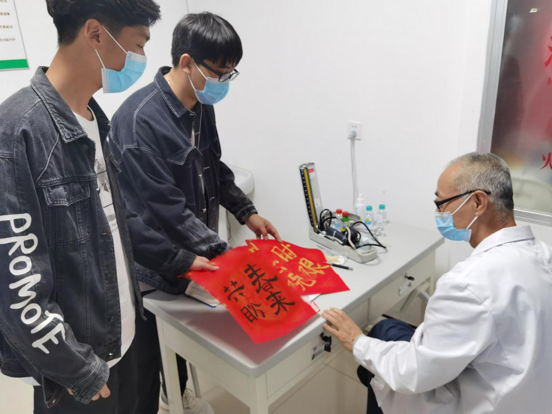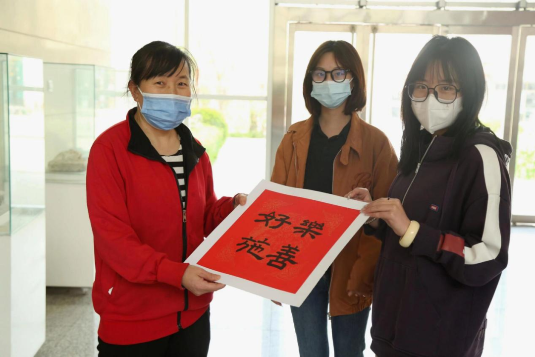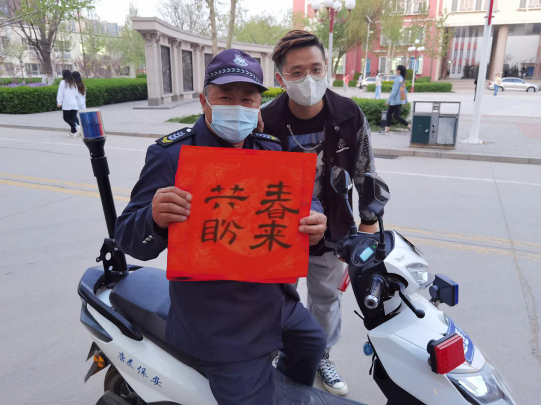 本次活动中,同学们以“笔”寄愿,把对战“疫”工作者们大爱情怀的崇敬之情凝于笔端、跃然纸上,用一幅幅书法作品、篆刻作品,寄托对一线工作者的真情与厚爱。书法篆刻社的社员带着敬意和祝福,把精心创作的书法作品赠送给太阳集团志愿者、国防护卫队、校医院医护人员、门卫、保洁和食堂叔叔阿姨等一线工作人员,并以此向抗疫先锋们表达崇高的敬意和衷心的感谢。