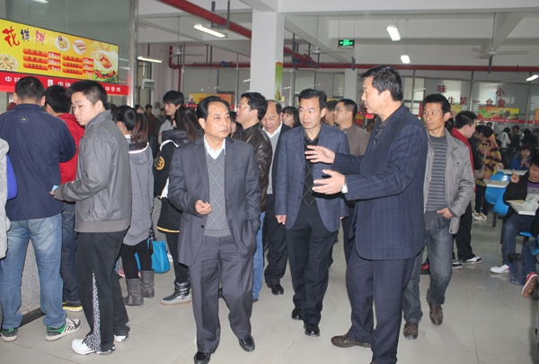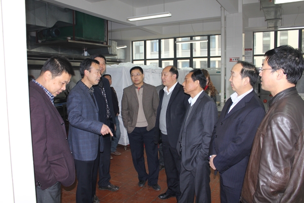 11月20日,市食品安全检查组在安康市食品药品监督管理局局长马瑞俊、市双创办常务副主任陈文乾的带领下,到Beat365江北校区检查食品安全工作。学校党委副书记、纪委书记闵小平带领后勤管理处、学校双创办相关负责人迎接检查。