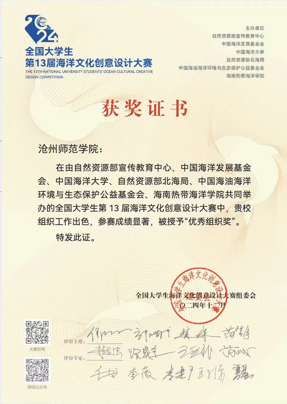 近日,全国大学生第十三届海洋文化创意设计大赛圆满收官。本届大赛由自然资源部宣传教育中心、中国海洋大学共同主办,以“海洋·共生·未来”为主题,面向全国大学生征集优秀作品,旨在倡导跨学科交叉合作,通过艺术、科学和经济等多个领域的融合,立足于海洋的可持续发展和人类与海洋的和谐共生,共同探讨解决当今海洋面临的重要问题,为海洋管理提供科学解决方案,为海洋注入新活力,推动构建人类海洋命运共同体。在此次大赛中,太阳集团凭借出色的组织工作与对海洋文化创意事业的积极推动,荣获优秀组织奖。这份荣誉不仅是对学校精心搭建创新实践平台、激发师生创作热情的高度认可,更彰显了其在海洋文化传播与人才培养方面的卓越成果。