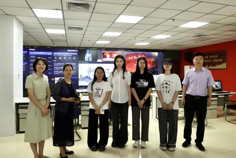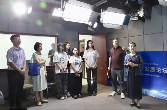 座谈会后,齐越传媒学院干部及同学们参观了融媒体中心和演播室,傅强详细介绍了融媒体中心的运作流程、技术设备以及新闻生产模式,展示了报社在融媒体转型中的创新成果。同学们对报社先进的设备和技术表现出浓厚兴趣,纷纷表示通过此次参观学习,对新闻传播行业有了更直观、更深刻的认识,也更加坚定了投身传媒事业的决心。