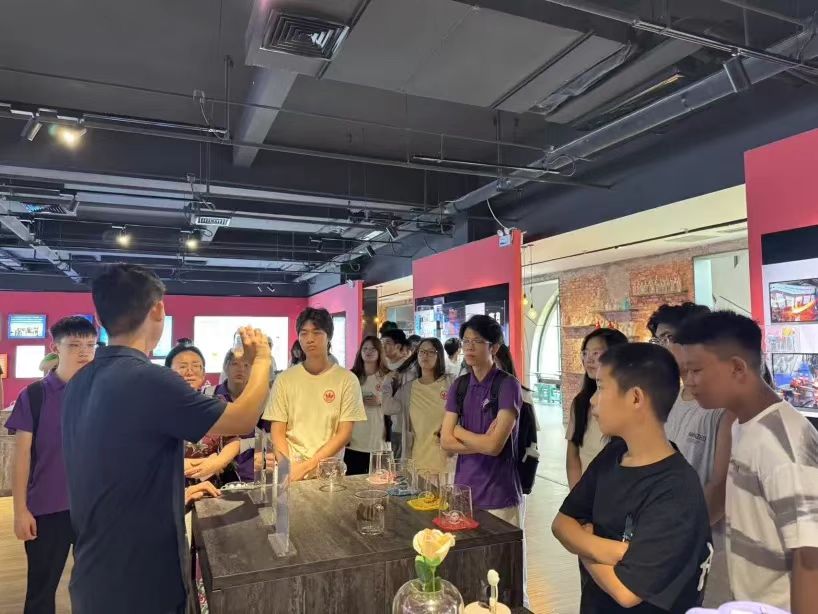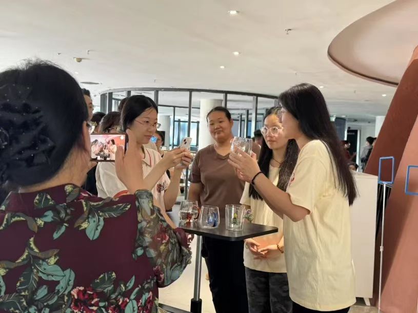 师生们首站来到了明尚德玻璃博物馆,调研了解河间玻璃产业的悠久历史与独特魅力。同学们参与到博物馆线上直播活动之中,用英文介绍馆内的相关玻璃产品,凭借扎实的英语功底,清晰、流利地向直播间的观众介绍着玻璃制品的材质、工艺、用途以及背后的文化故事,赢得了观众的点赞。