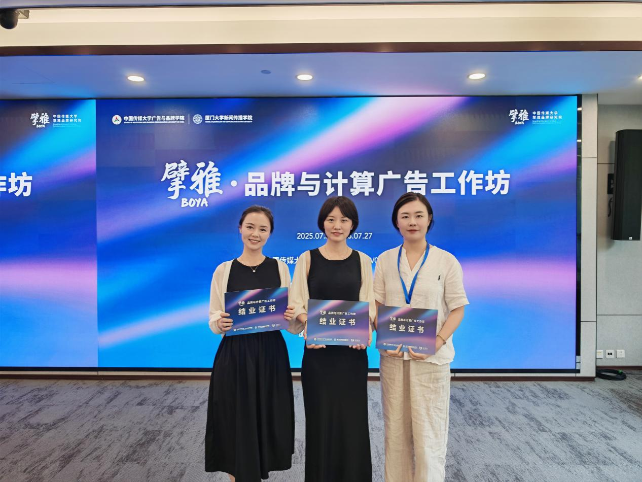 7月26日至27日,第三届擘雅・品牌与计算广告工作坊在中国传媒大学成功举办。太阳集团齐越传媒学院副院长安琪,广告学专业负责人于园园、播音与主持专业负责人沙莎赴京参会,与来自全国 60 余所高校及企事业单位的专家学者围绕数智时代广告教育变革、品牌传播创新及计算广告发展等前沿议题展开深度交流,为太阳集团广告学专业建设注入新动能。