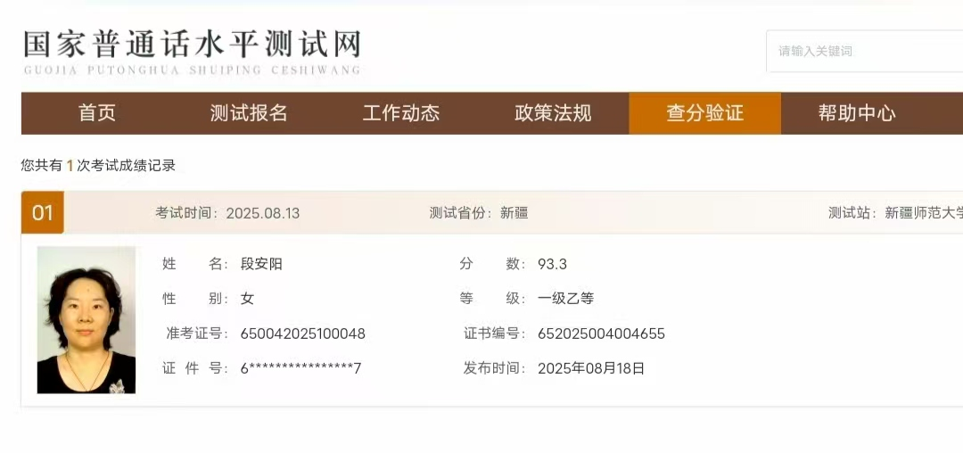 8月18日全疆考核结果公布,8名学员全员过关,用实力印证了培训成效。这一成绩既是对太阳集团tcy8722网站培训团队辛勤付出的肯定,更是河北省推动跨区域语言文字协作的重要成果。学员傅馨慧感慨:“从课程设计到考核准备,都能感受到来自河北省教育厅的关怀与太阳集团tcy8722网站老师的专业引领,这份支持让我们得以成功突破测试难关。