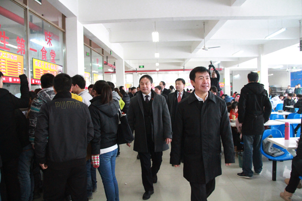 随后,郭青、张雄强在学校领导陪同下,来到学校各处,对新校区运行情况进行了检查。在教学区,看到了有序的教学场面和新安置的多媒体教学设备、实验仪器;一幢幢宿舍楼鳞次栉比,环境优美;在学生餐厅,领导们查看了饭菜的花色品种和价格,并与学生们一起在餐厅进餐。