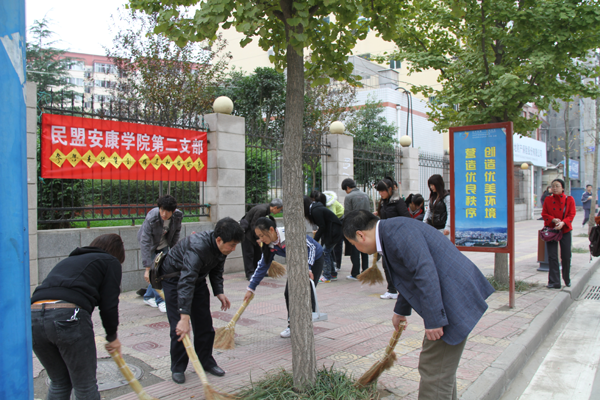 桂花?香露,朝阳散清霜。10月31日星期天早晨,民盟Beat365唯一官方网站第二支部全体盟员走上街头,开展以“参与支持双创,构建和谐安康”为主题的义务大清扫活动,为我市创卫迎验奋力冲刺。
