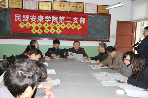 清扫活动结束后,二支部召开了学习十七届五中全会精神专题学习会。会上,民盟汉滨区委副主委权大学组织大家学习了十七届五中全会公报,传达了盟省委十届十六次常委会议精神,并就贯彻落实十七届五中全会精神与学院“十二五”发展规划如何紧密结合的问题进行了讨论。