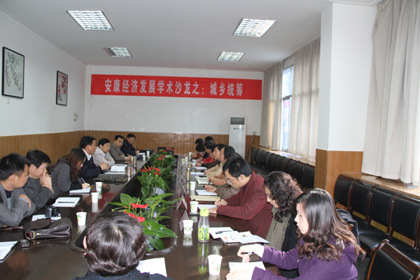 首先,胡书记对崔书记一行的到来表示了热忱的欢迎,并对崔书记一直以来对我院各项事业发展的关心和支持表示感谢。崔书记就城乡统筹的意义进行了阐述,对我市城乡统筹工作的有利和不利因素进行了分析,并提出“钱从哪里来?人往哪里去?” 两个问题请与会专家共同探讨。梅秘书长对安康目前城乡统筹的一些典型事例和各县区的主要措施进行了简要的介绍。我院单福东教授、何家理教授、赵临龙教授分别从国家政策层面、安康市资源特点及学术研究的角度提出了自己的见解,阐明了城乡统筹的本质,并对城乡统筹工作的实施工程中可能会出现的偏差进行了诚恳的提醒。查芳、崔晓明、李丽、陈兴平、吴世珍等副教授也积极参加探讨。活动中大家各抒己见,气氛轻松活跃。 “安康经济发展学术沙龙”是由经管系和秦巴区域经济发展战略研究中心主办,旨在浓厚学术研究氛围,是一个研究中心服务于教师进行科学研究的科研载体和活动方式,是一个开放式的学术活动,每期确定一个当前经济社会发展的热点问题为主题,邀请相关专家参加学术沙龙,为政府、研究机构、高校师生、企业等搭建一个学术对话、交流、争鸣的平台。