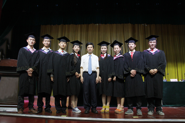 在庄严雄壮的国歌声中,毕业典礼拉开帷幕。校长王兴林代表全体师生员工,向顺利完成学业的2013届毕业生们表示热烈的祝贺,向为学生健康成长倾注心血和汗水的老师们表示诚挚的感谢,向全力支持学生完成学业的家长、亲友及社会各界表示崇高的敬意。在同学们即将离开校园、步入社会之际,王兴林给他们送上了最美好的祝福,他希望广大毕业生要自觉站在时代发展的前列,志存高远,脚踏实地,勇担重担,奋发有为,将实现“个人梦”与“中国梦”紧密结合起来,让青春在实现“中国梦”的实践中绽放光彩,让人生理想和价值在实现“中国梦”的进程中得到升华。