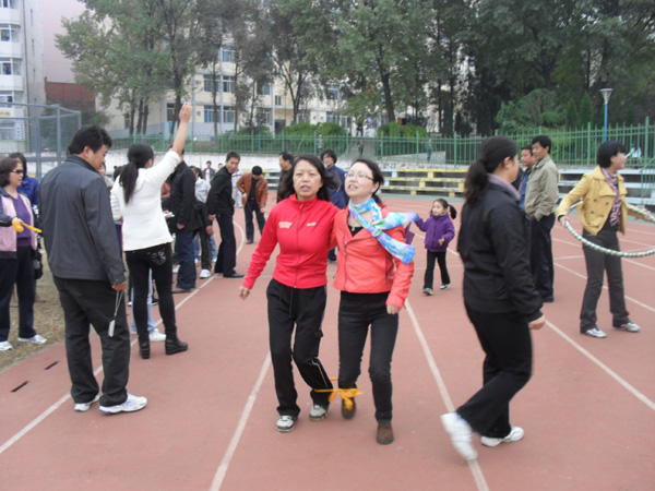 为深入推进“创先争优”活动,落实学院的“五联共建”制度,11月6日上午,机关二党支部、外语系党总支、体育系党总支在学院田径场共同举办了一次“冬季阳光体育健康活动”。学院党委组织部部长胡波、外语系党总支书记李岩、体育系党总支书记风冯德学与五十余名教师党员以及几十名学生参加了此项活动。 活动设置有滚铁环、托球跑、两人三足跑、投乒乓球、跳绳、摇呼啦圈、拔河等项目。师生们利用这次难得的户外运动机会,积极参加到冬季体育活动中来。大家精神饱满,积极参赛;比赛项目形式多样,情趣盎然。整个比赛活动场面紧张而有序,人人充分享受着运动带来的活力与快乐。 组织此项活动,旨在将“五联共建”的精神在共建单位发扬光大,旨在加强机关职能部门与教学单位的联系,更好的发挥教学部门、职能部门在教书育人、管理育人和服务育人中的作用。同时,以健康高雅的活动积极正确的引导学生,寓教育于活动之中,让他们切实感受党组织的关心和温暖,培养师生情感,激发他们认真学习的热情,促进优良校风、教风、学风的形成,推动学生全面成才。 活动也丰富了校园文化生活。