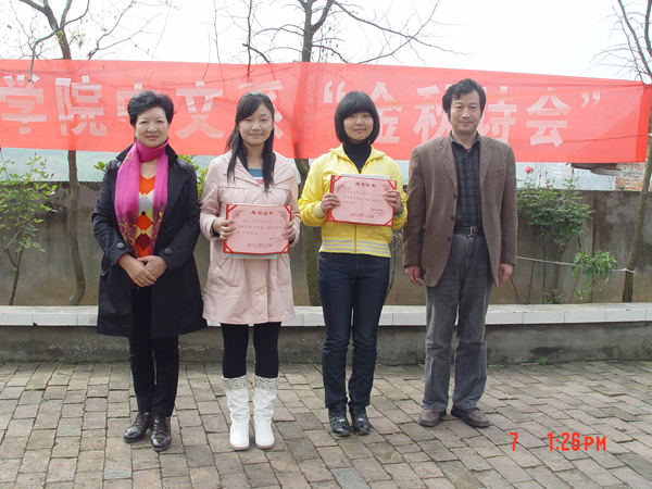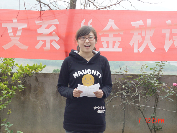 为了增进学生对地方民俗民情的了解,激发他们爱国爱乡的热情,同时提高学生感悟生活、感悟文学、感悟美的能力,中文系于2010年11月7日组织学生在九里湾举办了一场别开生面的“金秋诗歌朗诵会”。