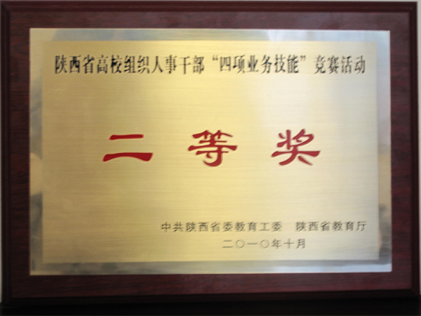 10月9日,陕西省高校组织人事工作“四项业务技能”竞赛决赛在西安音乐学院进行。陕西省委组织部常务副部长张迈曾,陕西省委教育工委副书记、教育厅厅长杨希文、省委组织部部务委员陈光明出席决赛与表彰大会并讲话,省委教育工委、省教育厅副巡视员马三焕宣读竞赛结果,省委组织部、教育厅有关处室领导、全省各高校组织部长观摩了比赛。 进入决赛的共有9个学校代表队,我院党委组织部田兆杰和人事处周云代表我院参加决赛。决赛按照个人必答与集体必答、抢答、风险题三个环节进行。经过激烈的比赛,我院代表队夺得决赛第三名,荣获团体二等奖。田兆杰和周云分别荣获陕西省高校组织人事工作“四项业务技能”竞赛现场知识比赛优秀选手奖。另外,丁兵获得陕西省高校组织人事干部“四项业务技能”竞赛计算机运用能力比赛二等奖(共三名)、于咏梅获得陕西省高校组织人事干部“四项业务技能”竞赛演讲及背诵比赛二等奖(共三名)。