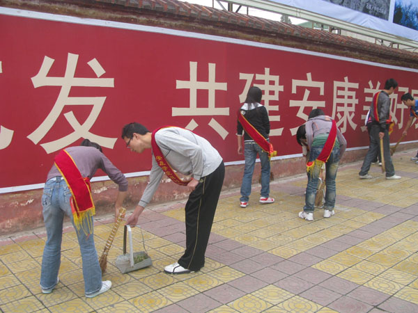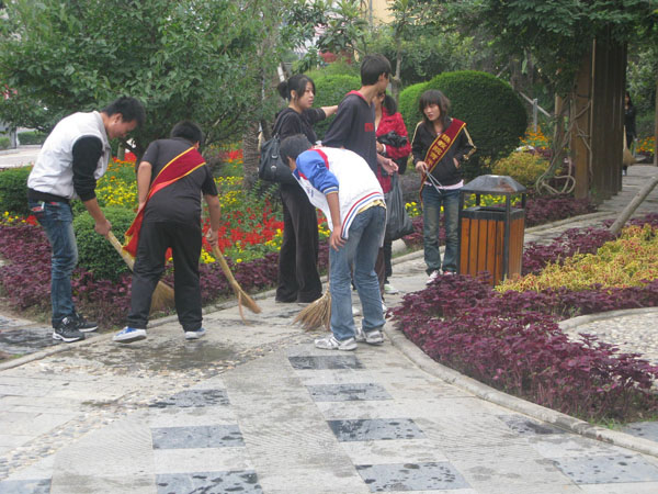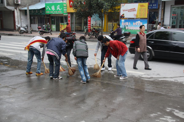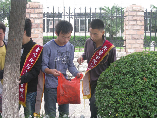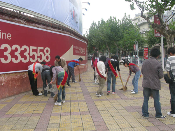 为营造整洁文明的城市环境,迎接省级卫生城市验收,9月30日上午,我院组织600余名师生开展了节前大清扫活动。学院党委副书记胡鸿晓、副院长杨行玉走出校园,对我院包抓责任区进行检查,对责任区内的个别商户出店经营、行人乱停乱放车辆等不良行为进行指导纠正。各部门、各院系负责人带领师生走上街头,对包抓的临街双创责任片区进行了大清扫。