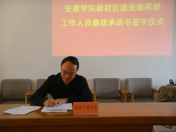 5日上午,胡鸿晓主持会议,对新校区建设中加强党风廉政工作的重要性和紧迫性作了强调,并就如何抓好党风廉政工作提出了具体要求。新校区建设指挥部监审办公室主任王新民同志组织与会人员,学习了中共中央办公厅国务院办公厅印发《关于开展工程建设领域突出问题专题治理工作的意见》、教育部《关于印发<教育部关于严禁领导干部违反规定插手干预基本建设工程管理行为的若干规定>的通知》等文件,传达了教育部召开的工程建设领域突出问题专项治理工作视频会议精神。指挥部领导及全体工作人员在《Beat365唯一官方网站新校区建设工作人员廉政承诺书》上郑重签名。