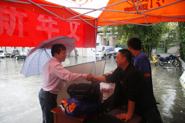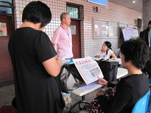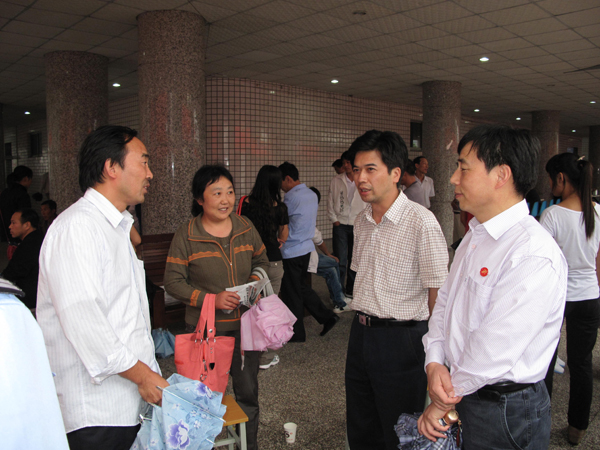 党委副书记胡鸿晓、副院长陈刚与学生家长亲切交谈
