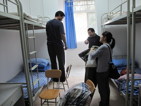 党委副书记胡鸿晓、副院长陈刚深入学生宿舍与学生家长交谈