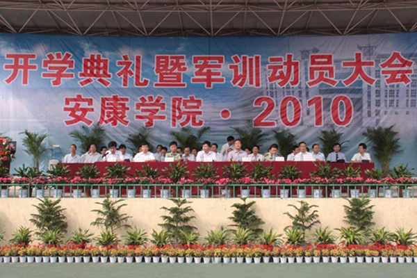 金色九月,合着新学年的快乐,迈着轻盈的步伐,在这个收获的季节和美丽祥和的日子里,我院2010级新生开学典礼暨军训动员大会于9月13日上午在东校区体育场隆重举行。学院党委书记杨涛,院长王兴林,党委副书记胡鸿晓,副院长陈刚、向纪明,武警安康支队副政委曾海尧,副参谋长祁乾周以及各院系主任、党总支书记和相关部门负责人在主席台就坐,2010级新生及各院系负责军训的辅导员、承训部队教官出席了大会。大会由陈刚主持。