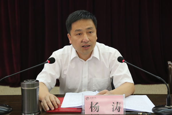 杨涛首先代表学校党委向两年来在学校各条战线上表现突出、受到表彰的先进集体和个人表示祝贺,向参与新校区建设、为学校转型发展打下良好基础的工作者表示衷心的感谢。杨涛指出,学校的事业之所以得到快速发展,获得省高教工委授予的“先进基层党委”的荣誉称号,得益于大家在各自工作岗位上的优秀奉献和共同努力,也体现了省教育厅、高教工委对我们学校几年来艰苦创业和辛勤工作的肯定。