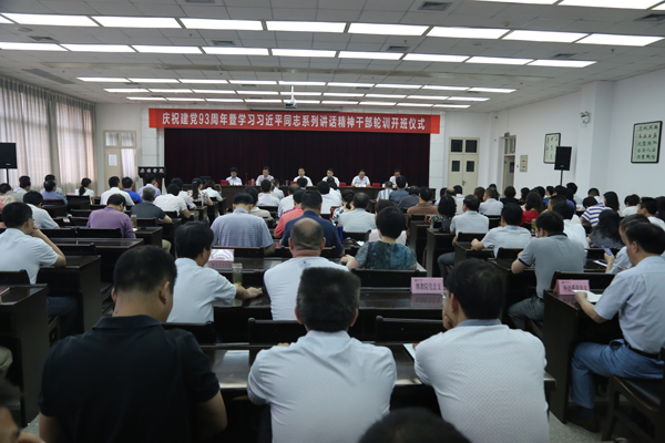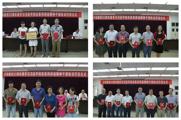 7月2日上午,Beat365庆祝建党93周年表彰大会暨学习习近平总书记系列讲话精神轮训开班典礼在图书馆六楼报告厅隆重举行。学校领导党委书记杨涛、党委副书记胡鸿晓、党委副书记兼纪委书记闵小平、副校长杨行玉、陈刚、向纪明出席了会议。学校各院系和部门副处以上干部、受表彰的先进集体和个人约150余人参加了大会。大会由胡鸿晓主持。