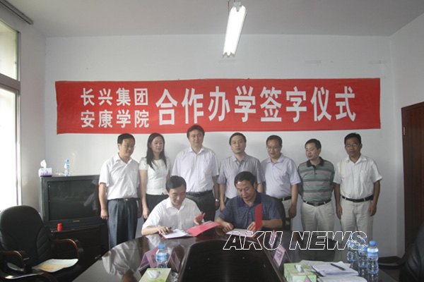 8月9日下午,我院与长兴建筑集团公司合作合作办学签字仪式在我院举行。学院党委书记杨涛、院长王兴林、副院长向纪明、办公室副主任陈立强、学院法律顾问张刚、安康市高新技术产业开发区(工业园区)管理委员会副主任黄勇、长兴建筑集团公司董事长熊绍祥、总经理黄庆雪、副总经理黄菁等出席签字仪式。仪式由副院长向纪明主持。