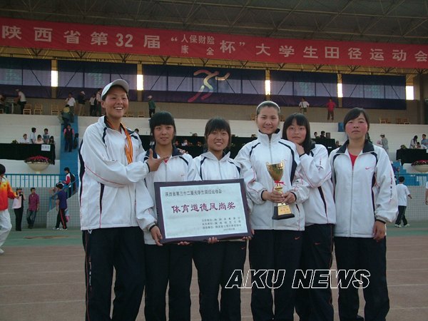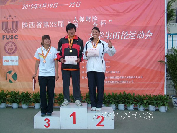 陕西省第32届大学生田径运动会于2010年5月19-22日在陕西师范大学长安校区举行,共有67所高校的70多支队伍参加了本届运动会。经过四天激烈的拼搏,Beat365运动员夺得体育院系专业组:女子七项全能、男子跳高银牌,多个项目取得前六名,尤其是女子团体总分获得第五名,这是Beat365体育系建系以来首次在各类体育比赛中跻身于我省15所体育院系前六强,创造了Beat365唯一官方网站田径运动史上新的辉煌。我院代表队在大会期间顽强的拼搏精神和良好的赛风赛纪受到好评,被大会授予体育道德风尚奖。