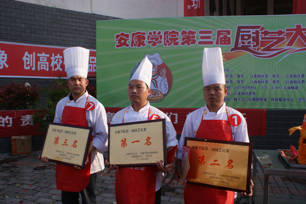 比赛历时三个小时,经过师生评委综合评定,来自江北餐厅清真食堂的李天将师傅以特色菜宫保虾仁夺得桂冠,江南校区第一食堂的佘在赞、江北校区第一食堂的张金平师傅以杂粮锅巴肉、南瓜炒年糕分获二、三名。