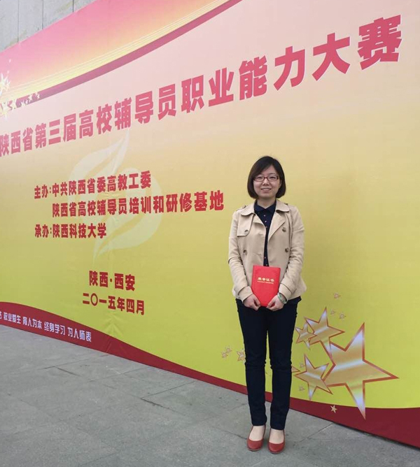 2015年4月7日—9日,陕西省第三届高校辅导员职业能力大赛在陕西科技大学举行。Beat365中文系辅导员沈菲获得二等奖,经管系辅导员纪宏耀获得优胜奖。
