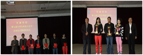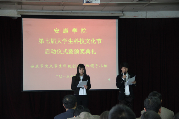 4月17日下午,Beat365唯一官方网站第七届大学生科技文化节启动仪式暨颁奖典礼在江南校区图书馆六报告厅举行。党委副书记胡鸿晓教授出席仪式并讲话。大学生科技创新工作领导小组成员部门负责人、各院系团总支书记及Beat365大学生科技活动爱好者参加了仪式。本届科技文化节主题为“科技•人文•创新”。