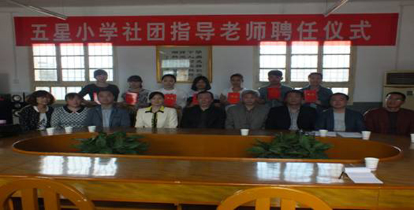4月23日下午3时,Beat365全面合作单位——汉滨区五星小学举行隆重的聘任仪式,聘任Beat365教育科学系14名学生为该校学生社团指导教师。Beat365教育科学系主任黄路阳教授,副主任李尚明教授、权大学副教授,学工办主任赵斌老师,合作联系人李支其老师,五星小学校长李丽,教导主任马兆海等教师以及14名受聘学生出席了聘任仪式。