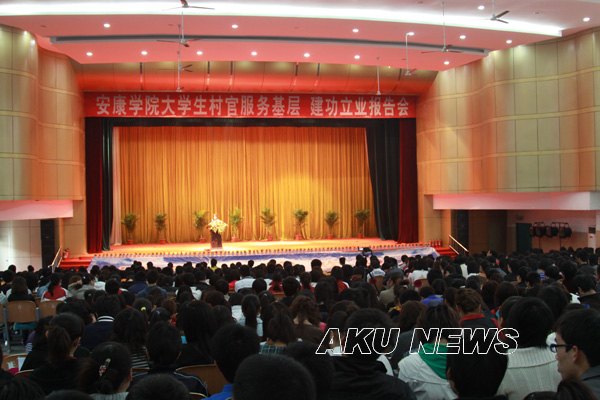 4月17日,大学生村官“服务基层、建功立业”主题报告会在西校区大礼堂举行,学院领导胡鸿晓、闵小平、杨行玉、向纪明,市委组织部副部长范先进、团市委副书记黄元琴出席报告会,我院千余名师生听取了报告。