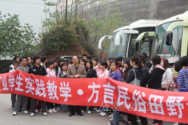 中文系历来重视实践教学,在抓好第一课堂教学的同时,多渠道、全方位组织学生开展丰富多彩的第二课堂实践教学。2010年4月18日,在杨运庚、郝礼军、邹棠华、韩晔四位老师的带领下,中文系07级汉语言文学专业95人奔赴旬阳县开展民俗文化调查研究。在出发前,系主任戴承元给同学们系统讲述了旬阳的民俗文化和孟达墓相关历史知识,使同学们不仅增长了知识,还进一步激发了调研兴趣。