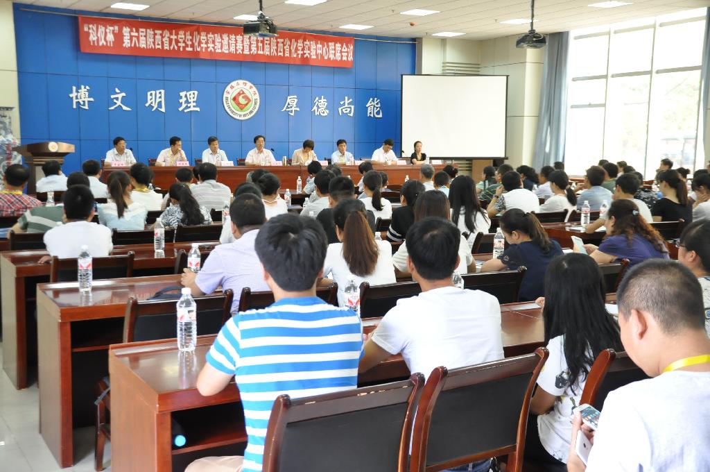 由陕西省化学学会主办,宝鸡文理学院承办的“科仪杯”第六届陕西省大学生化学实验邀请赛暨化学实验中心联席会议,于2015年8月20日在宝鸡文理学院隆重举行。
